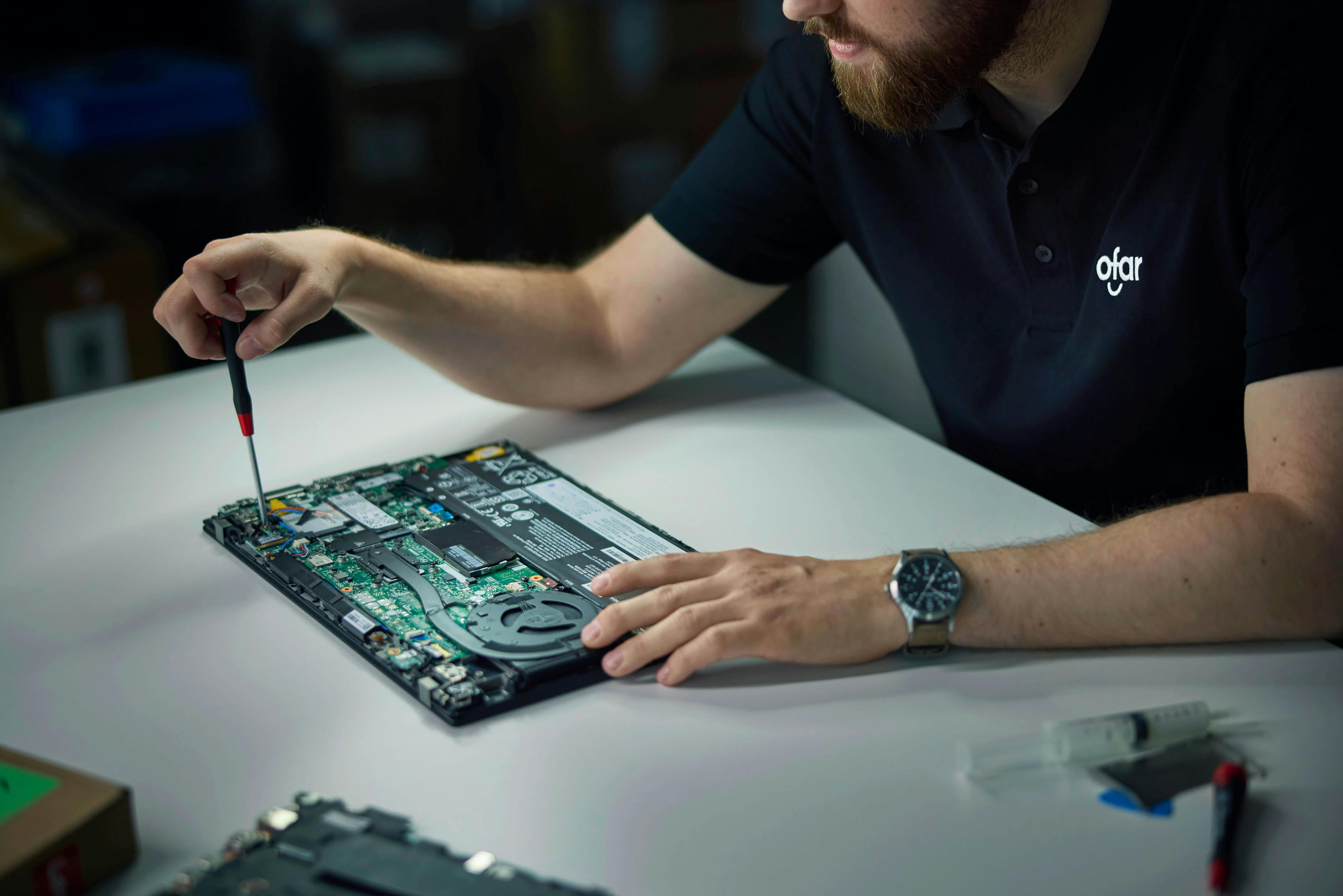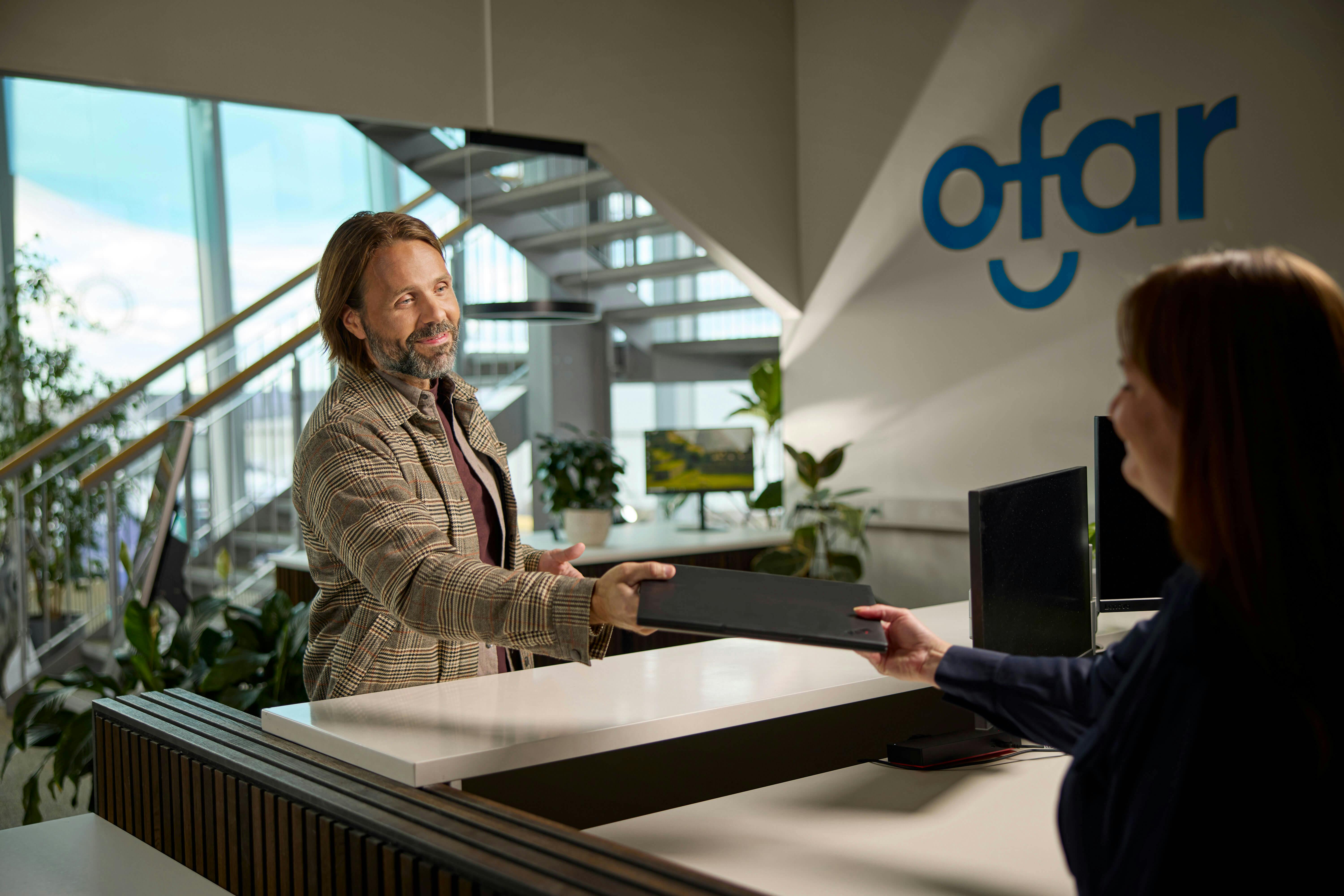 Tilkynningar um hugsanlegan galla er hægt að senda með tölvupósti á verkstaedi@ofar.is eða fylla út ósk um verkbeiðni á heimasíðu okkar. Þjónustuver okkar vinnur úr öllum tilkynningum og sendir ýmist lausn til baka eða númer á viðgerðarbeiðni þannig hægt sé að koma með tölvuna beint á verkstæði okkar á Köllunarklettsvegi 8.
